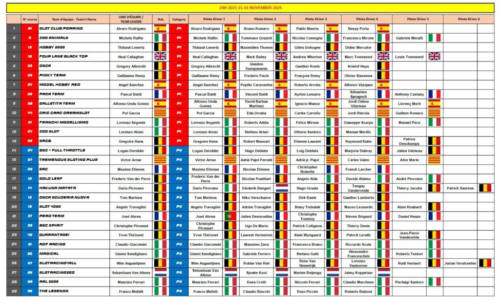 REGISTERED TEAMS – BRUSSELS 24HRS 2025
